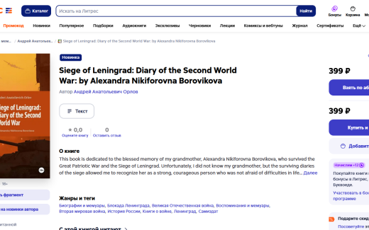 В связи с санкционной политикой США в отношении России, компания Amazon приняла решение удалить книгу: «Siege of Leningrad: Diary of
